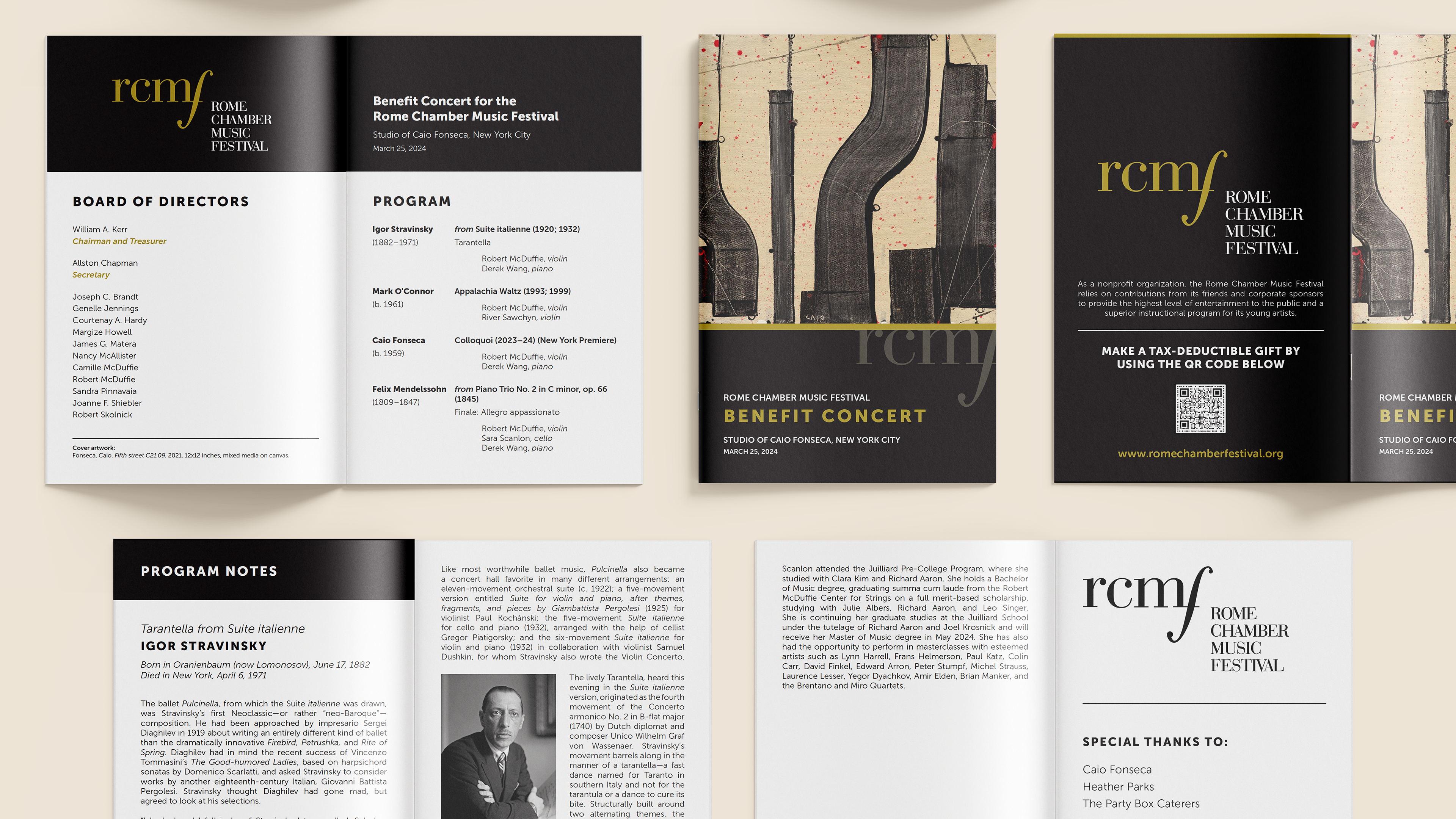 I worked with nonprofit organization Rome Chamber Music Festival to design a premium quality concert program for their benefit concert on March 25, 2024.